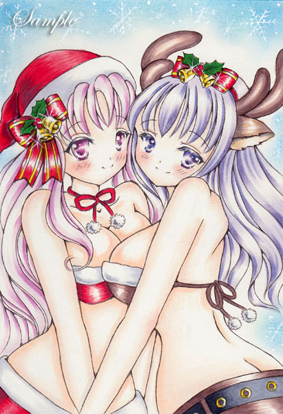 クリスマスなので過去イラスト再掲します。メリークリスマス😊 #イラスト #クリスマスイラスト #サンタイラスト #トナカイ #アトリエの系譜S #絵描きさんと繋がりたい #コピックイラスト #女の子イラスト