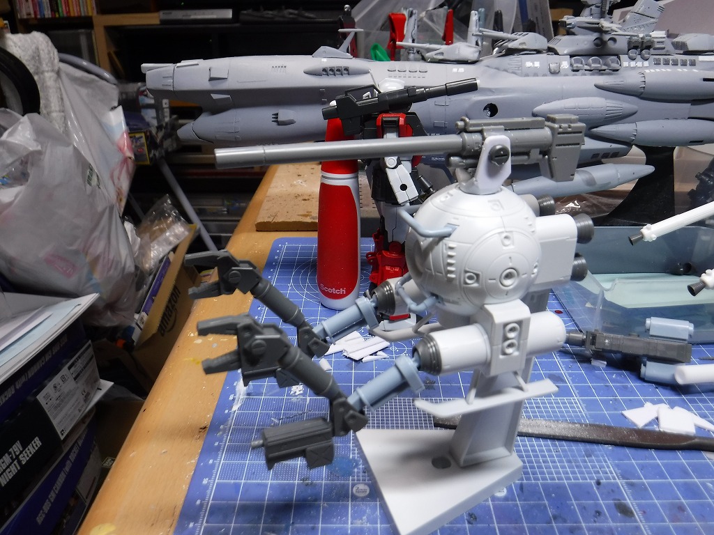 #サンダーボルト版ボール を制作中~ 下部の主砲が干渉してスタンドが取付出来なくなったので、 延長スペーサー作って・・・ 新たなプロペラントタンクで接続~ #ガンプラの画像貼るとRTされると聞いて #ガンプラはどんな自由な発想で作ってもいいんだ #ガンプラ