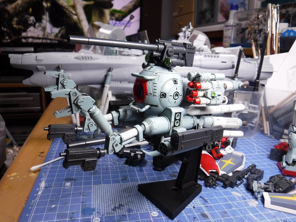 #サンダーボルト版ボール を制作中~ コックピットレンズは筆塗で・・・ ミサイル先端を赤色に・・・ 墨入れ開始~ 組み立てへ・・・ #ガンプラの画像貼るとRTされると聞いて #ガンプラはどんな自由な発想で作ってもいいんだ #ガンプラ