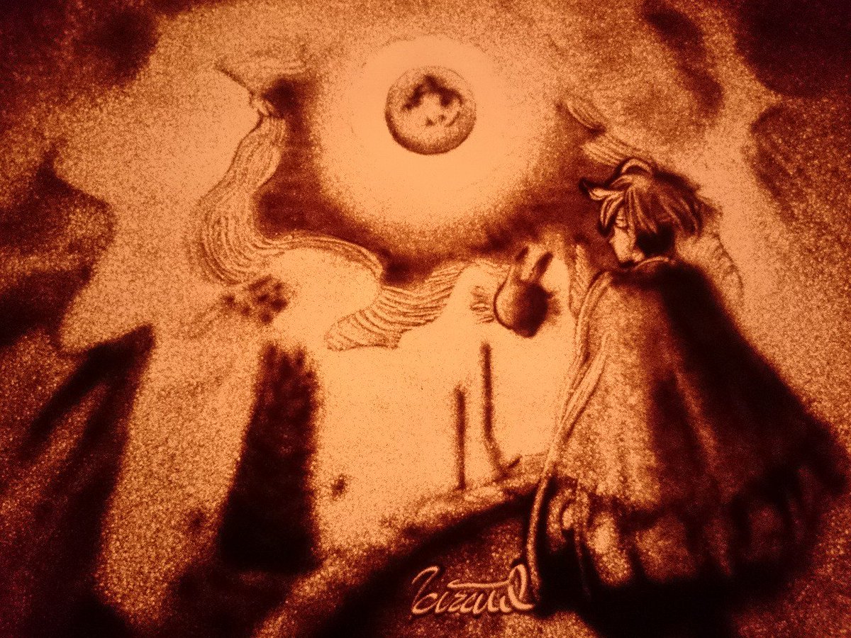 2時間ちょいも描いてしまって処理が時間かかるので先に画像を・・・ はやしひろしさん版チョンガラ描かせていただきました~はやしさんの絵は砂と相性よさそうって話をご本人にもしたことありまして、やっと描けましたw想像通りとても楽しかったです( *´艸`) #サンドアート #アークザラッド2 twitter.com/kisatosandworl…