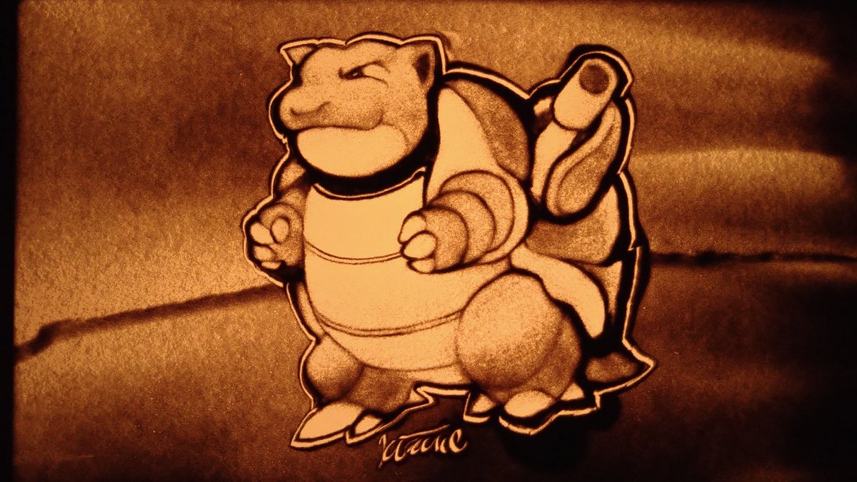 久々の配信で描き方誤ってアホみたいに時間かかっちゃいましたが無事にカメックス出来ました😇 #サンドアート #ポケモン #初代ポケモン151匹砂で描けるかな twitter.com/kisatosandworl…