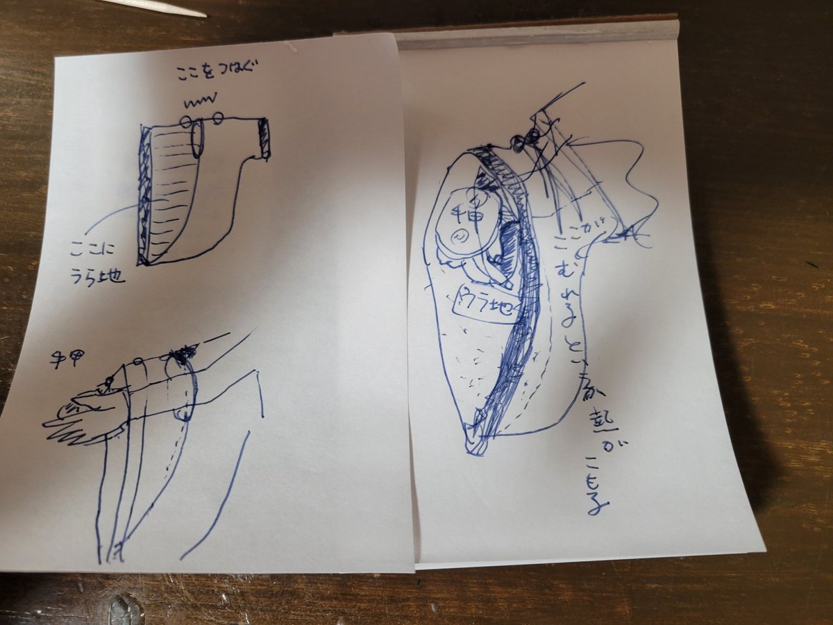 #サンファンキャラの衣装を実際に着てみてわかったこと 風に弱い 重い 剣がでかい上に袖に絡まる 縫っても縫っても終わらない あーあ、自分が木偶だったら、この部品頭に直接縫い付けられるのになー!