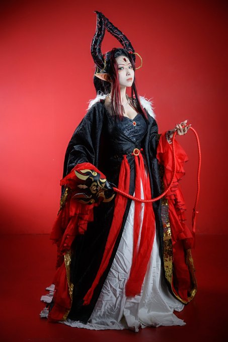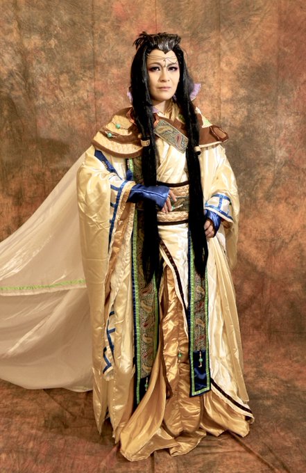 イラスト版のデザインが好きすぎて再現してみたものの、圧倒的に重厚感が足りぬ🤣併せに交ざれない…お蔵入り衣装😭 イラスト浪の脇~袖ラインと腰回りとの隙間 イラスト蔑のよき上司感 イラスト莫言の手篭めにされてない感 #サンファンキャラの衣装を実際に着てみてわかったこと