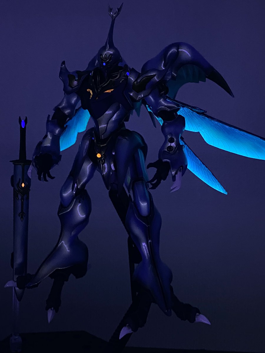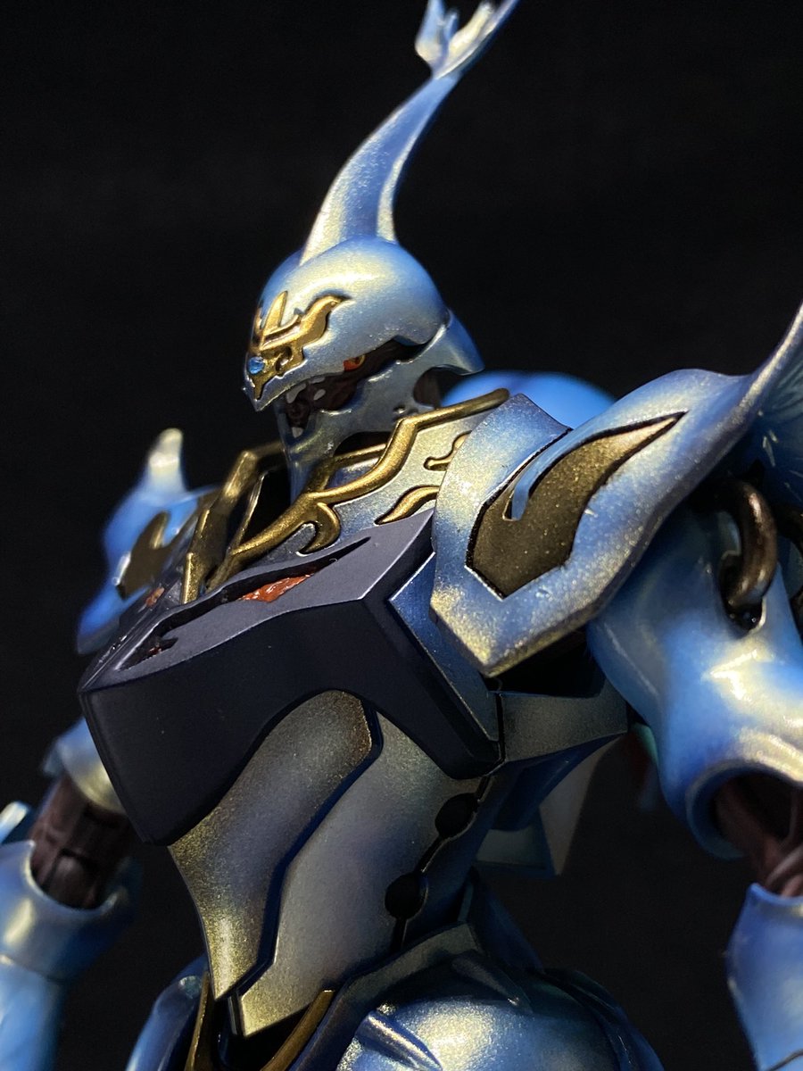 サーバインやっと完成しました。禍々しさが欲しくて、肩や脛?のあたりをパテで加工したり、瞬間接着剤で生き物っぽくしたり。塗装は初めての偏光パールで四苦八苦…時間はかかったけど楽しいキットでした。写真は続くw #ガンプラ #ガンプラ好きとつながりたい #サーバイン
