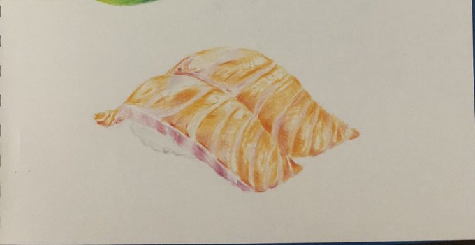 先日食べたサーモンカルパッチョの押し寿司を描きました! カルパッチョとお寿司!?と思いましたが、酸味がマッチしておいしかったです☺️ #食べ物イラスト #イラスト #絵描きさんと繋がりたい #イラスト好きな人と繋がりたい #サーモン #foodillustration #illustration