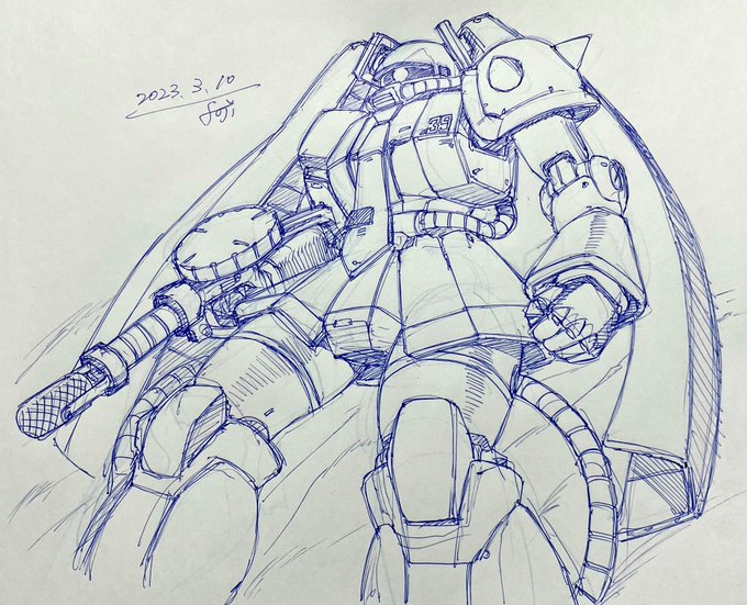 #一日一絵 #毎日絵一枚上げる #イラスト #色鉛筆画 #イラスト好きな人と繋がりたい #絵描きさんと繋がりたい #ザクの日 サイコ・ザクⅢ ザクⅢ改をベースに改造したガンプラであり中華ドラゴンズの防衛戦力として投入されたがガンダム チームの強さに負けた