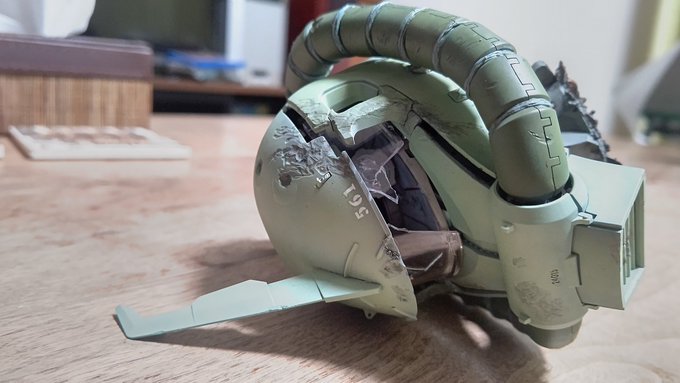 WBCに夢中になり過ぎて、ザクの日なのにこいつをあげるの忘れてた😂 角が曲がってますが、頑張って汚しました🫠笑 #ザクの日 #ガンプラの画像貼るとRTされると聞いて #ガンプラ好きな人たちと繋がりたい
