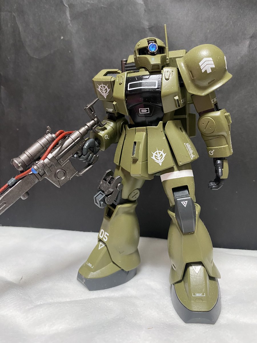 #ガンプラ #ザクスナイパータイプ #ガンプラの画像を貼るとRTされると聞いて #ガンプラ好きと繋がりたい ザクスナ完成しました HGの中でも数字若いので至る所に合わせ目が ライフルの造形やバックパックのゴツさがすごくいい出来で気に入ってます 頭のパーツが行方不明なのが残念です