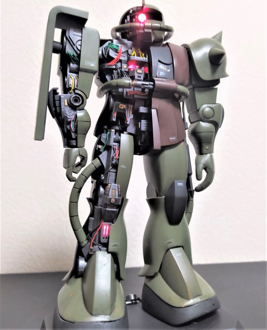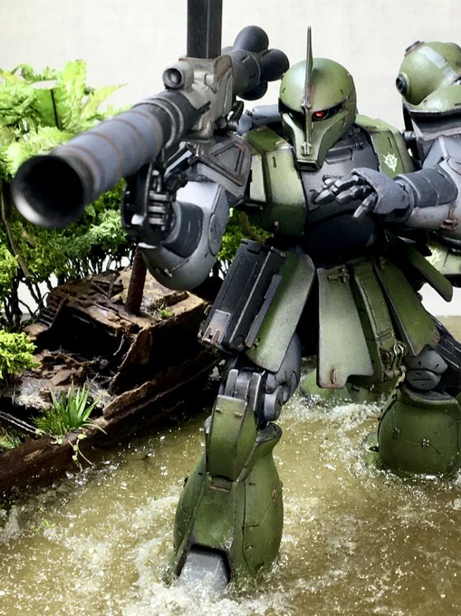 MGシャア専用ザク完成 ミリタリーテイストで自分好みの渋いシャアザクができましたよ✌️ ↓に簡単ですがディティール部もあげてみたのでよければそちらも是非見て見てください🙇♀️ (リプ続き #ガンプラ #ザクハラ #バックショットを晒すとRTがくるらしい