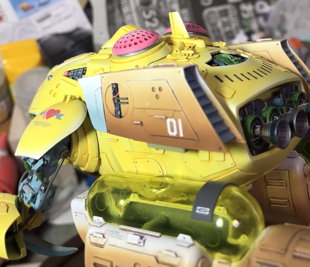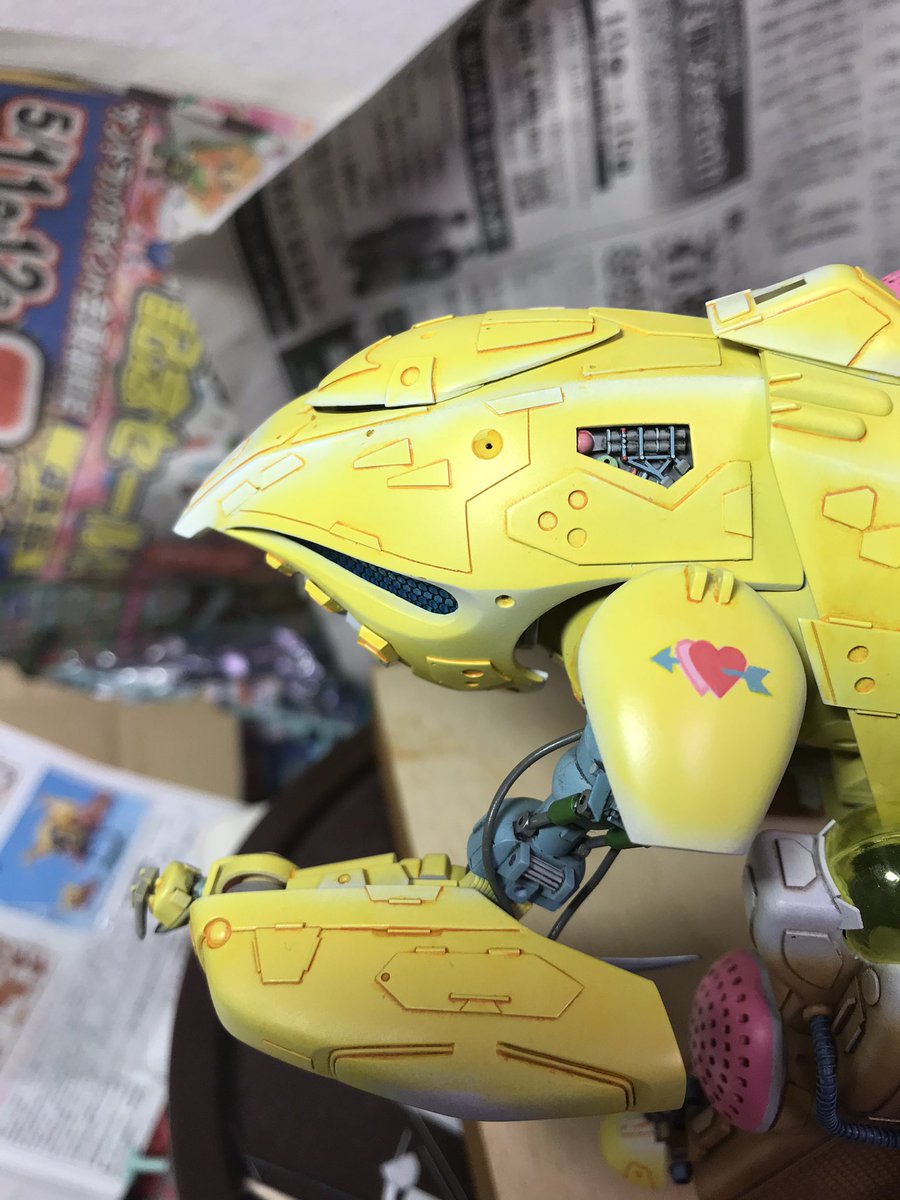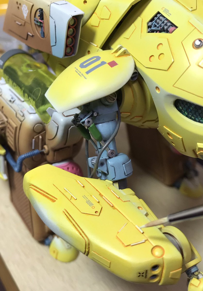 ザクレロです 各デカールとジオンマークが入りました😁 黄色部分に明るい色を乗せてディテールを強調してます。 伸ばしランナーの航行灯を、修正してたら青色が「ピッ」って飛んで行きました!作り直しです。 あぁ、模型の神様 まだ私に試練を与えるのですか😭 #ガンプラ好きと繋がりたい #ザクレロ