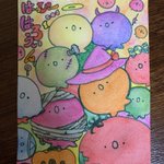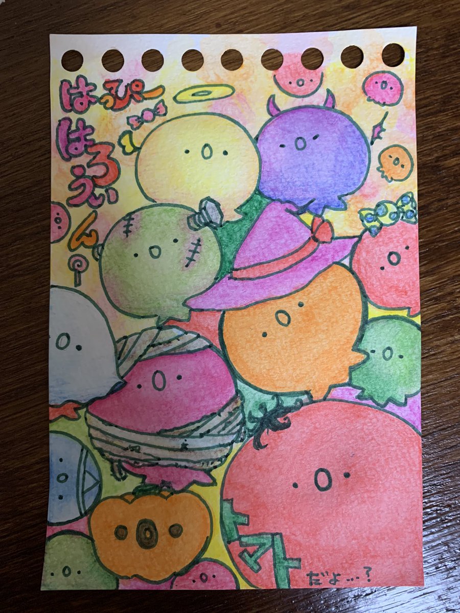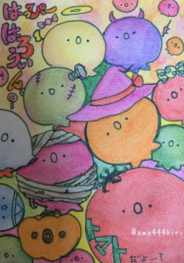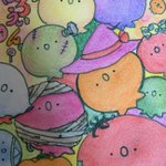 はっぴーはろうぃん? お菓子はほしい…のかも? いたずらよりただただただよっていたい…のかも? 本心ははザクロ星人達にしかわからないし ザクロ星人にもわからないのかもしれない ほよよん(・o・) #ザクロ星人 #ハロウィンイラスト #ハロウィン