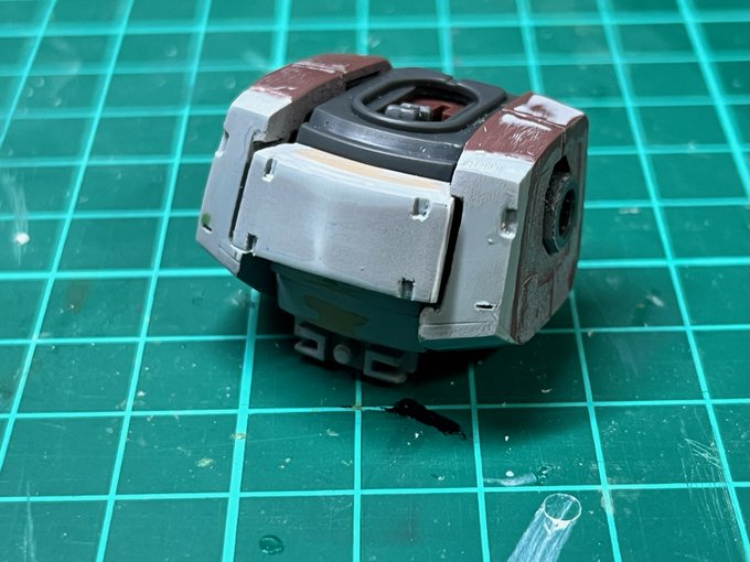 本日のラスト・ザク・デザートタイプ! プロポーションについては固まったので、後は地味な作業ばかり。 なのでテンションちょい上げの為に先にモノアイ入れました。 うまく光が拾えてない……! #ザク・デザートタイプ #HGUC #ガンプラ