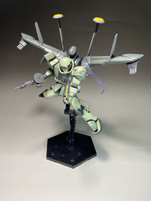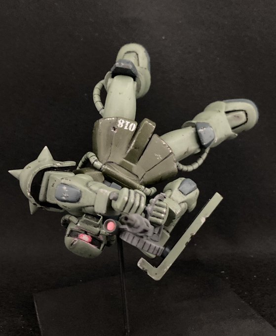 #旧キット の味わいをしっかり残しつつ自分好みのプロポーションと宇宙空間での戦闘っぽいアクロバティックな構図をテーマに戯れた1/144 #ザク 君、完成〜! #ガンプラ #プラモデル #ベストメカコレクション #ガンプラの画像貼るとRTされると聞いて #ガンプラ改造