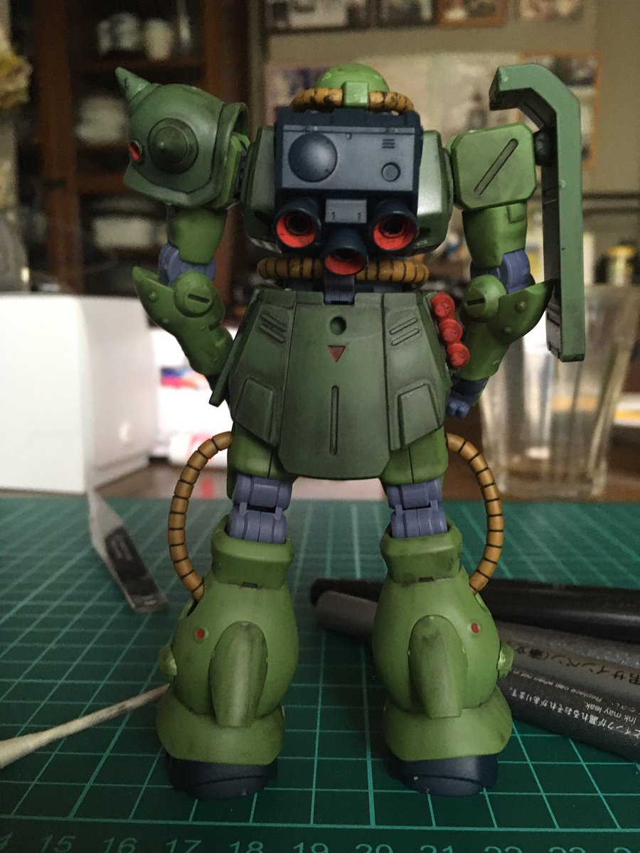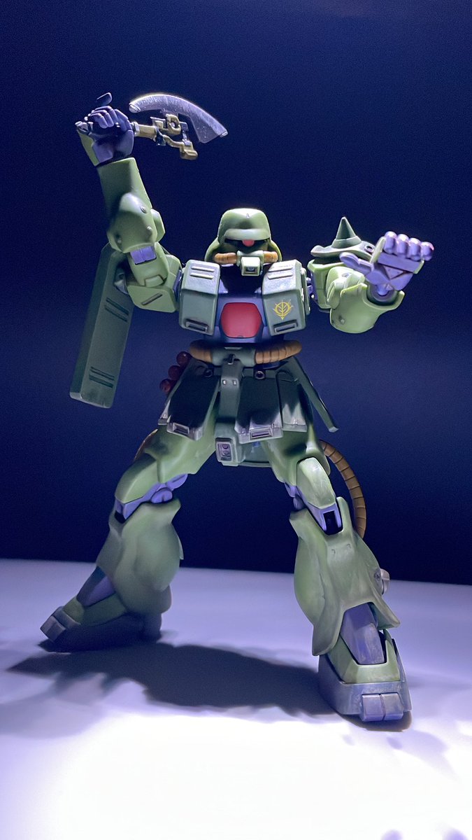#ガンプラ #ガンプラ初心者 #ガンプラ好きとつながりたい #ガンプラの画像貼るとRTされると聞いて #ザク2改 6体目 この色味とヘルメットのせいか なんかクリーチャー感が 出てるんですよね 爬虫類的な プレデター的な めっちゃ好き ウェザリングもっと上手になりたーい