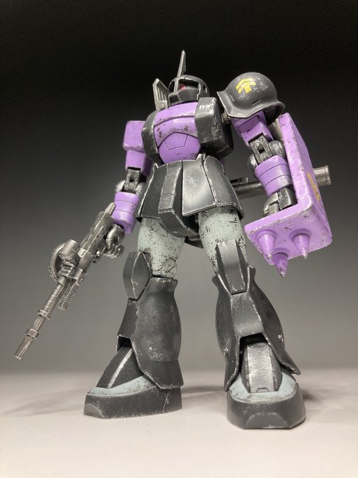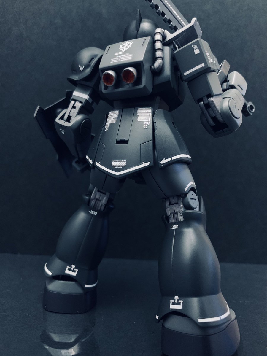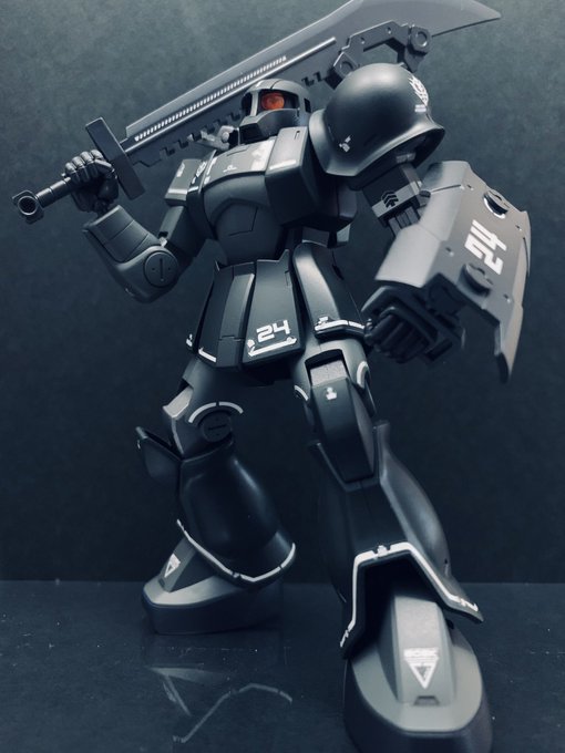 デカール貼って、またポージングの練習w オモロいアングル撮れた😆 週末に仕上げますかね〜。 #ガンプラ #ガンプラ好きな人と繋がりたい #ガンプラの画像貼るとRTされると聞いて #ザクI #黒い三連星
