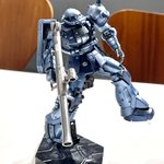 ポージングの練習😆 可動指にするとポロポロなってしまう〜😭 なかなか難しいです。 デカール貼って仕上げやらんとな😅 #ガンプラ #ガンプラ好きな人と繋がりたい #ガンプラの画像貼るとRTされると聞いて #ザクI #黒い三連星