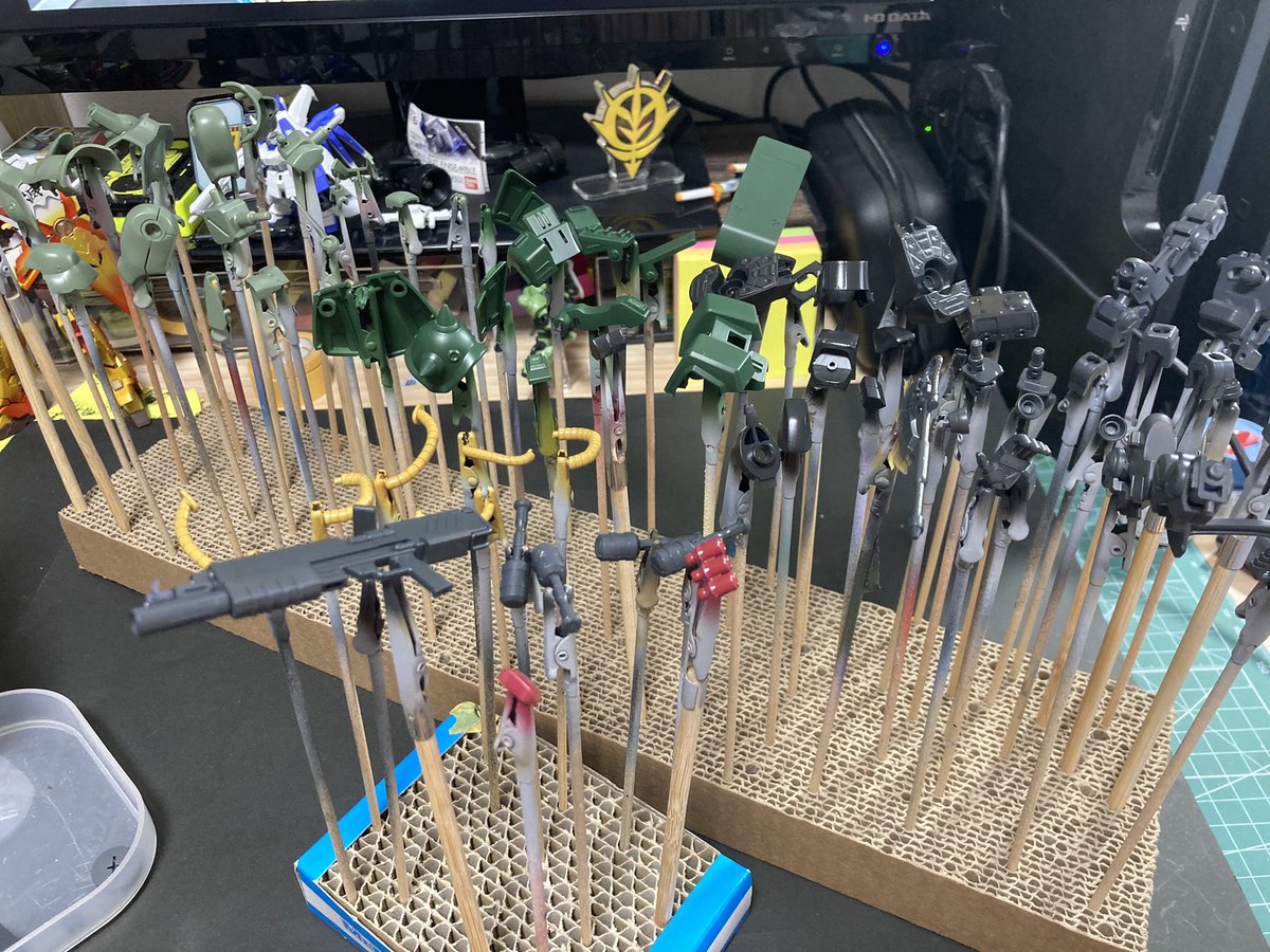 作成中のRE100ザクII改(FZ)、ヒートホークを加熱状態に塗装しました。熱そうになったかな? #ポケ戦 #ポケットの中の戦争 #ザクII改 #FZ #ガンプラの画像を貼るとRTされると聞いて #ガンプラの画像貼るとRTされると聞いて #ガンプラ好きと繋がりたい #ジオラマ #ウェザリング #ウォッシング