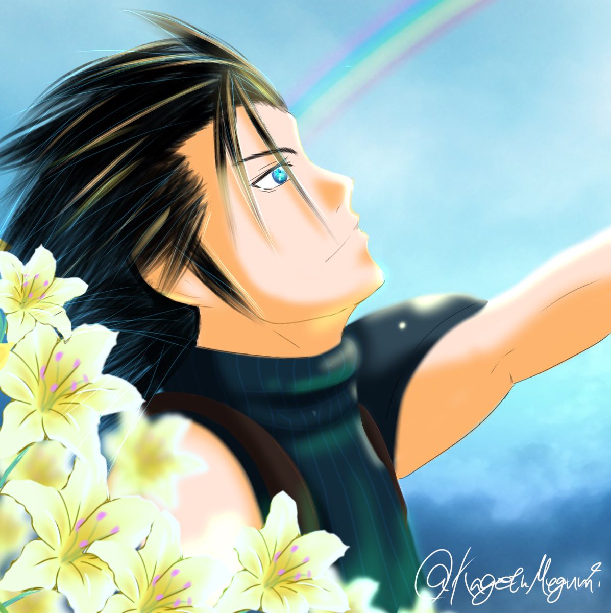 クライシスコアが発売ってことは来年の春にはゼルダの新作で夏にはFF16でなんやかんやでFF7の続編でちょっと展開早すぎる待って。 #FinalFantasy7 #CRISIS CORE #REUNION #ザックス #Zack #イラスト #アナログイラスト #クリスマスまで一週間?!