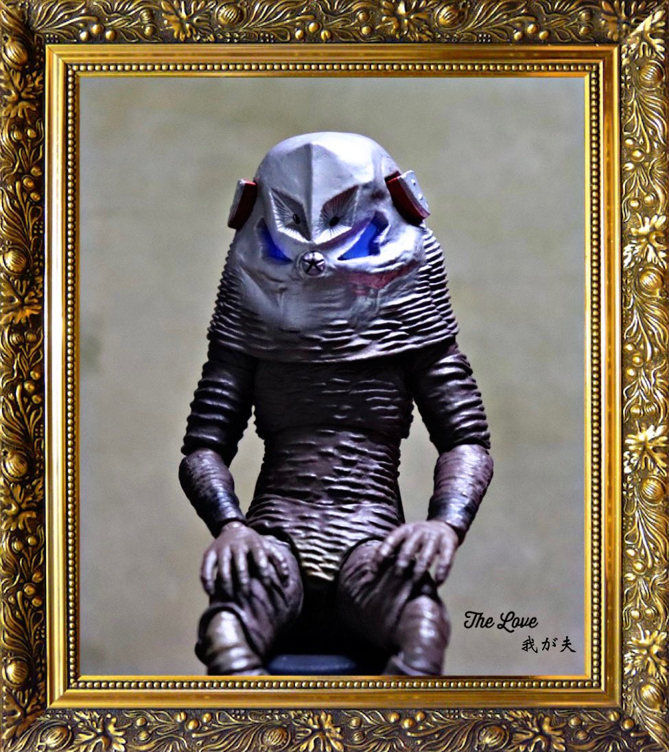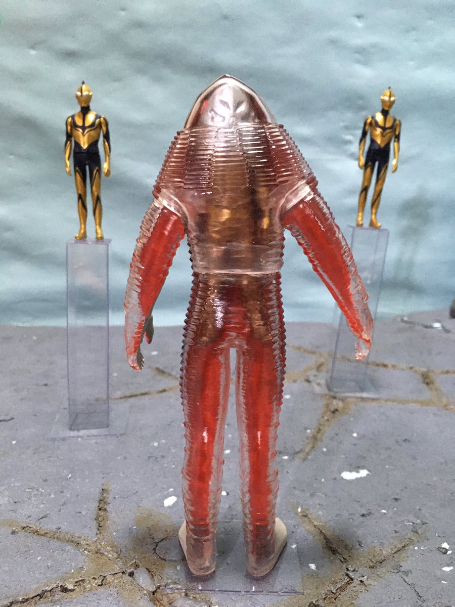 #夜のフィギュア撮影会 お題『カット』 シン・ウルトラマンのザラブ星人は背面がカットされた奇妙なデザイン!?←ソフビは背面が透明だからガイコツを仕込んでみた😆 #ザラブ星人 #シン・ウルトラマン #ソフビ #ムービーモンスターシリーズ #ガイコツ #ゾーフィ #メタコレ #オモ写