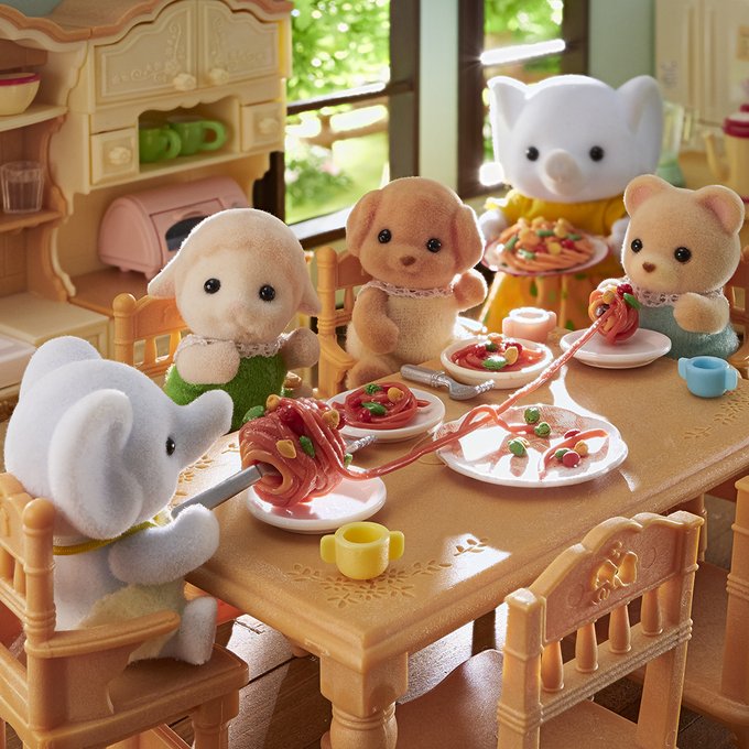 「パスタ出来たよー!」 「わーい!」 「…あれ?ヒルトンとりすぎだよ!」 「まだまだあるから、みんなで仲良く食べようね~」 お母さんが作ったパスタ、いっぱい食べたかったのかな😊? #シルバニアファミリー #シルバニア #パスタ #シェア #シルバニア赤ちゃん