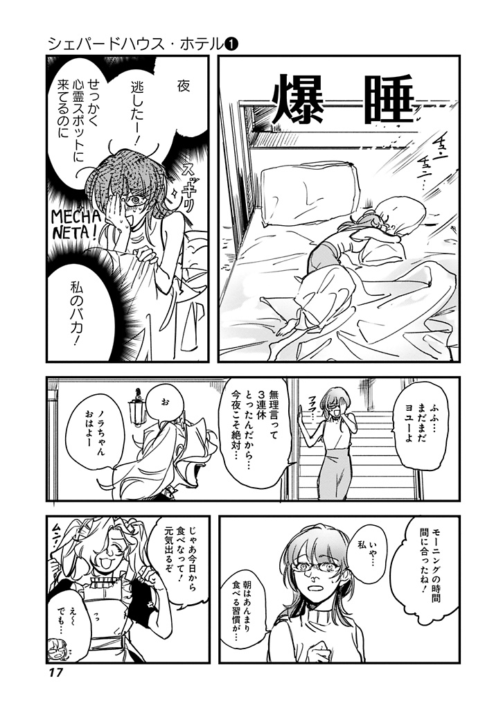 カナダのとある地方に幽霊の出るホテルがあるらしい (13/13) シェパードハウス第1話終 第1巻、本日4/18発売です! よろしくお願いいたします! #漫画が読めるハッシュタグ #シェパードハウス・ホテル