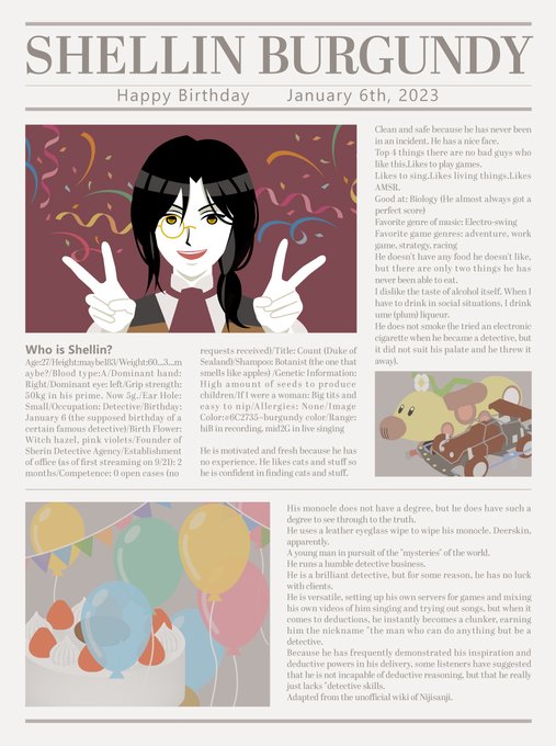 世界一美声美形圧倒的技術力遊戯実況滅茶苦茶愉快魔理架大爆走勇猛精進超絶聡明最高名探偵生誕爆裂祝賀感謝感激好好好!!!!!! (お誕生日おめでとうございます。いつも楽しい実況に心から笑わせていただいております。新しい27歳も楽しんでくださいね) #シェリン誕生日2023 #シェリンの証拠品