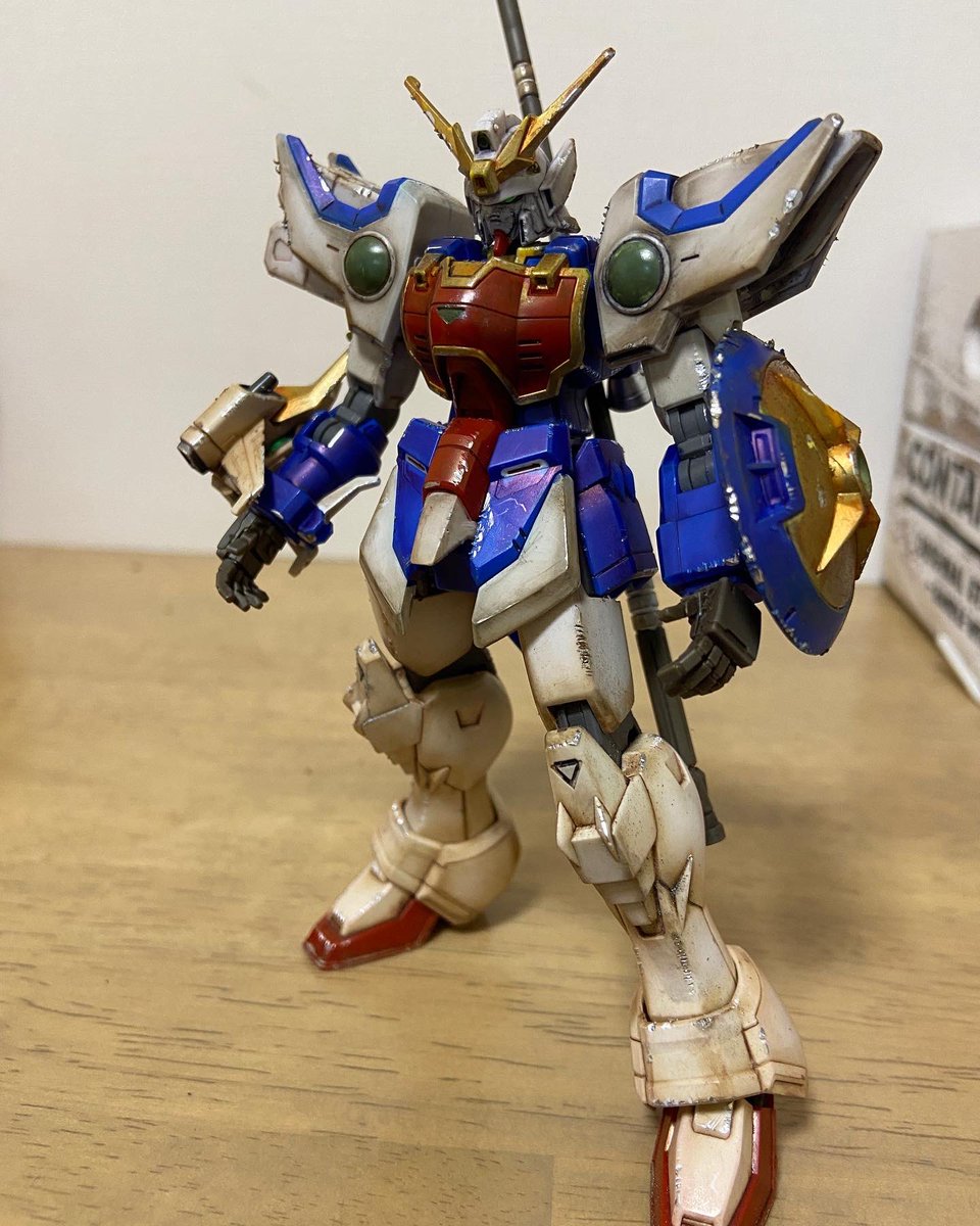 :ようやく完成だ。#シェンロンガンダム を!部分塗装、すみ入れ、ウェザリング、つや消しだ。黄部品にゴールドMで部分塗装だ!ナタクが発売されて彼は歓喜をしてくれたそうだ!これで他の4人のGに対し妬みの攻撃をしなくなりよかった…💦 下に続く #ガンプラ #ガンプラの画像貼るとRTされると聞いて