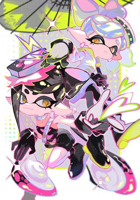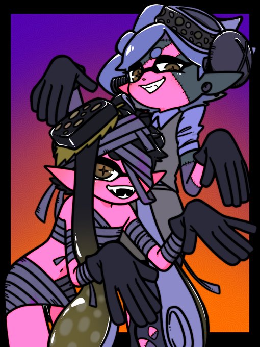 明日はSplatoween⭐️🎃 1枚目: アオリ&ホタル・2枚目: イイダ&ヒメ (4人の衣装はスプラ2の公式絵の衣装を少しアレンジしています) #Splatoon3 #スプラトゥーン3 #squidsisters #シオカラーズ #offthehook #テンタクルズ #Halloween #ハロウィン #キャンディブーケ