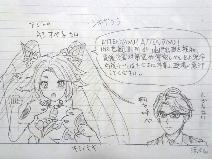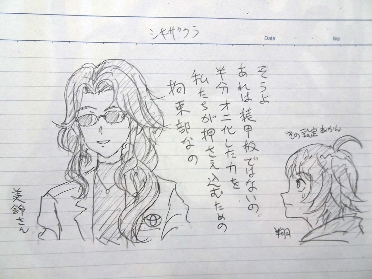 【雑感】ヒーロー物といえば出動シーンなんだが、6話まで白組が行政機関所属だと明かさず、謎の武装集団的な描写だったのが残念、早めに組織を明らかにして、拠点から移動メカでカッコよく出動するところが見たかったぞ。あとオペ子さんをキミノミヤちゃんにすればよかったのに。 #シキザクラ #落書き twitter.com/ruby_emy/statu…