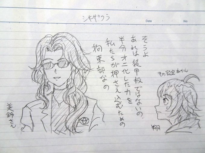 【雑感】パワードスーツはカッコいいんだが、変身システムや機能だけでなく名称(「ヨロイ」らしい)も説明されなかったのでモヤモヤする。やはり博士っぽいのが要所要所であれこれ解説したほうが良かったんじゃないかな? #シキザクラ #落書き twitter.com/ruby_emy/statu…