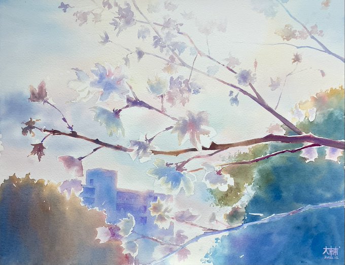 シキザクラ。 新作。 F6号ウォーターフォード紙。 #透明水彩 #水彩画 #風景画 #Watercolor #watercolour #watercolorpainting #シキザクラ