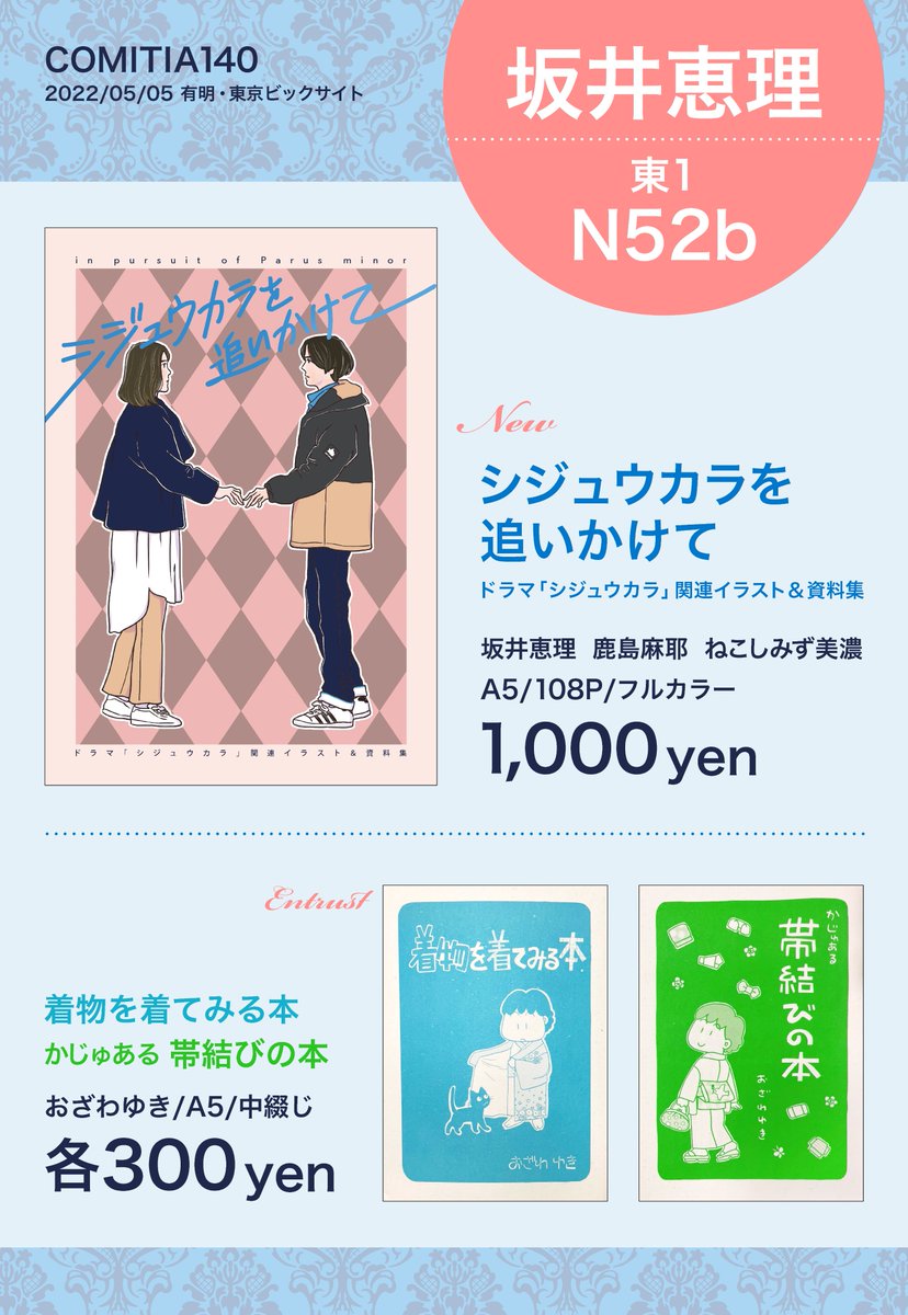 【お知らせ】 COMITIA140/東1ホール【N52b】坂井恵理 『シジュウカラを追いかけて ドラマ「シジュウカラ」関連イラスト&資料集』 A5/108P/フルカラー/1,000円 坂井先生のファンアート、劇中漫画ほぼ収録、描き下ろしで漫画監修・手元吹替などのレポート漫画あります。 #シジュウカラ #COMITIA140