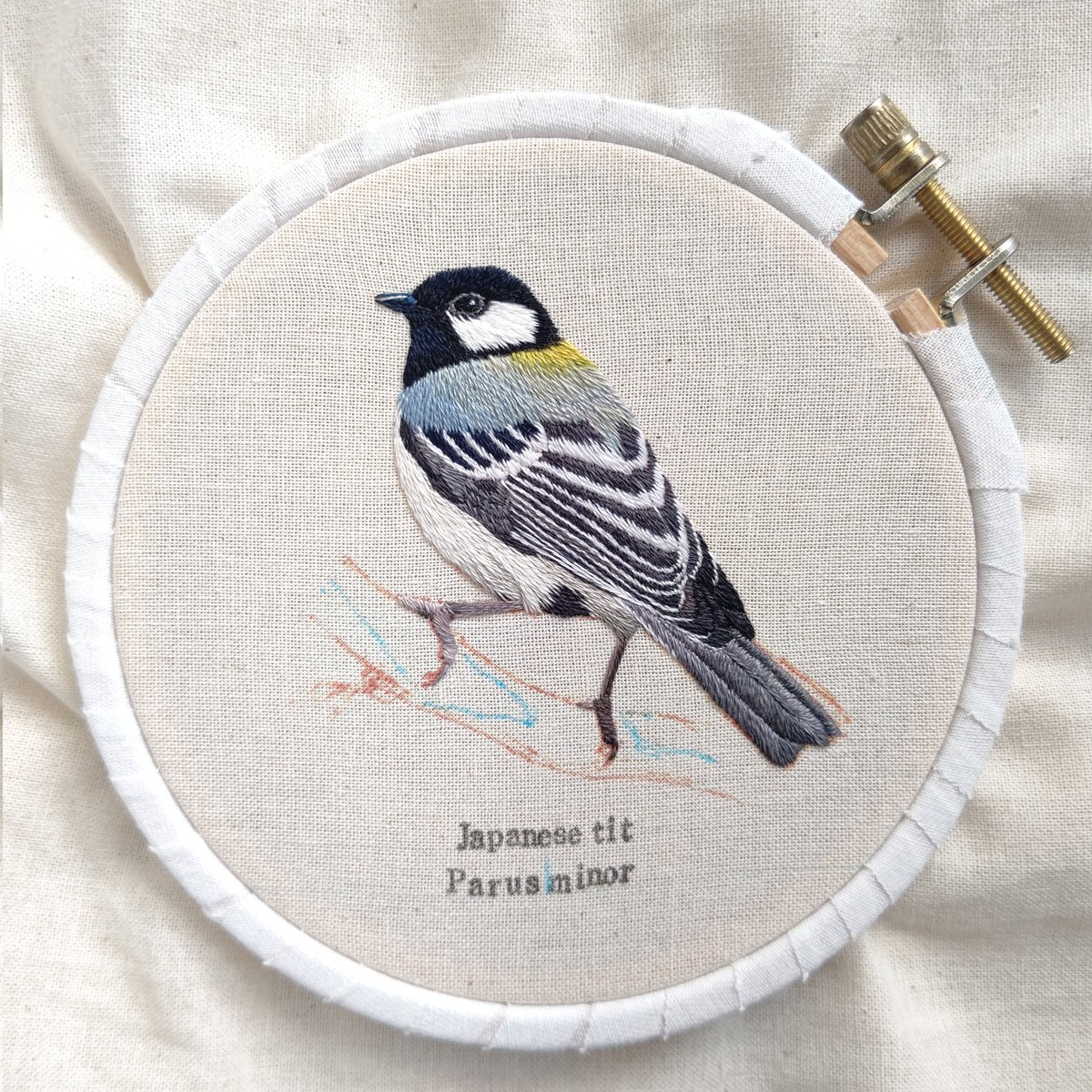 人気で完売していましたシジュウカラの刺繍ブローチの販売を再開しました✨ 背中のグラデーションがこだわりのリアルな仕上がりです😊 minne.com/items/25722865 #シジュウカラ #野鳥