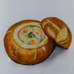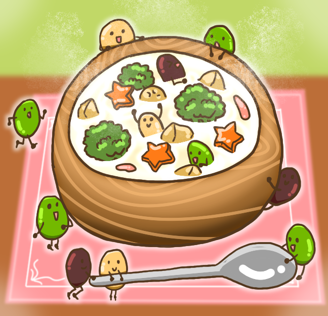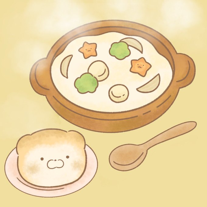 今日も外は雪国でもないのに雪景色☃️❄️ 寒くて凍えそうな毎日ですが、あったかいシチューでも食べて乗り切りたいですね☺️🫕✨ #イラスト #ゆるいイラスト #ゆるい絵 #豆 #ゆる豆 #お絵描き好きさんと繋がりたい #シチュー #無理しない一日に応援しております