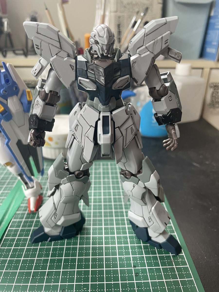 1/144 HG #シナンジュスタイン 完成したけどTwitterに上げてなかったのでアップ👍 外装フレームの塗料をガイアノーツのニュートラルグレーⅠ〜Ⅴでまとめて塗装してみた^_^ 派手さもなくシンプルなので「シナンジュスタイン」だな…といった感じ👍 #ガンプラの画像貼るとRTされると聞いて