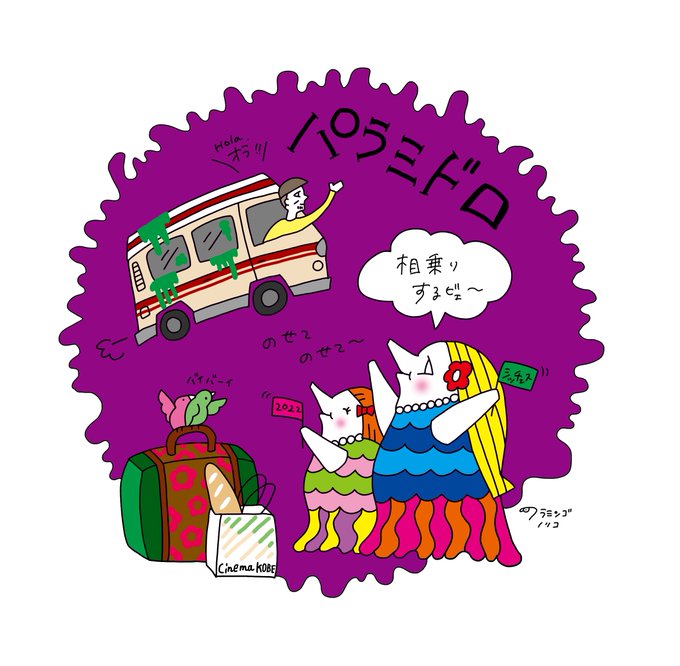 #シッチェス映画祭 #ファンタスティック・セレクション2022 ”相乗り旅行だビェ~” ★11月5日~11日★ 『#パラミドロ』 『#ヴィーガンズ・ハム』 上映!! ご来場お待ちしております💪!! #シネマ神戸 #アマビエ #イラスト #フラミンゴノリコイラスト