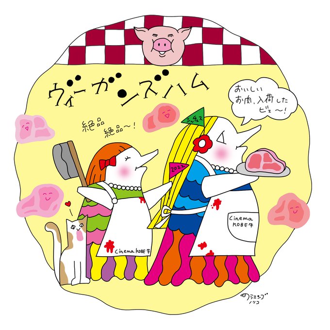 おはよう御座います★ #シッチェス映画祭 #ファンタスティック・セレクション2022 始まりました~!! ”美味しいお肉、食べるビェ~” ★11月5日~11日★ 『#パラミドロ』 『#ヴィーガンズ・ハム』 上映!! ご来場お待ちしております💪!! #シネマ神戸 #アマビエ #イラスト #フラミンゴノリコイラスト