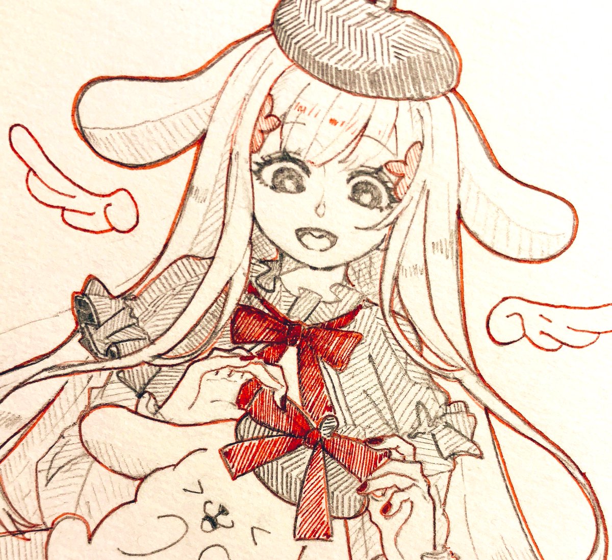 #シノアリスモフモフとのであい #シノアリス #シノアリス_ファンアート いなけりゃ描けばいいじゃない第1弾 デザインで力尽きました。 どのサンリオキャラがモチーフか分かるかな…? 線画置いていくので、お気軽にぬりえしてください。完成したら是非見せてね (*´ー`)