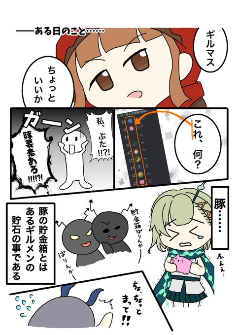 「DISCOバグって変なアイコンが勝手に付いちゃった事件」 っていうギルドでの一コマです。 ガチャが来る度に豚の貯金箱🐖が犠牲に…… ※キャラクターズはギルメンの代理(キャラ崩壊注意) #シノアリス_ファンアート