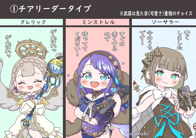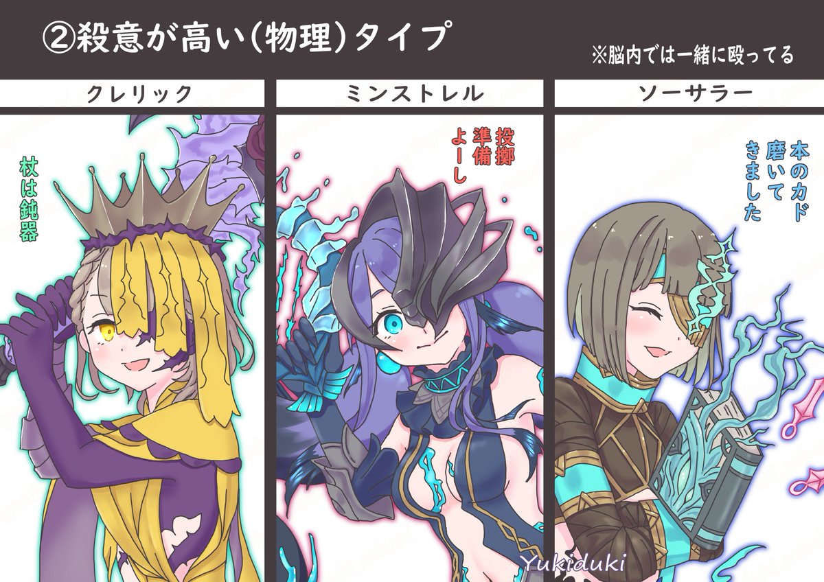 #シノアリス_ファンアート 以前から気になっていたもの。 「むしろ後衛の方が殺意高いことあるで」って(TLで)見かけたので。 あなたのギルドはどのタイプ? うちの後衛さんは通常①で接戦時②、特化ぶん回し完凸後は③かもしれへんなぁ…って思っている前衛ですw