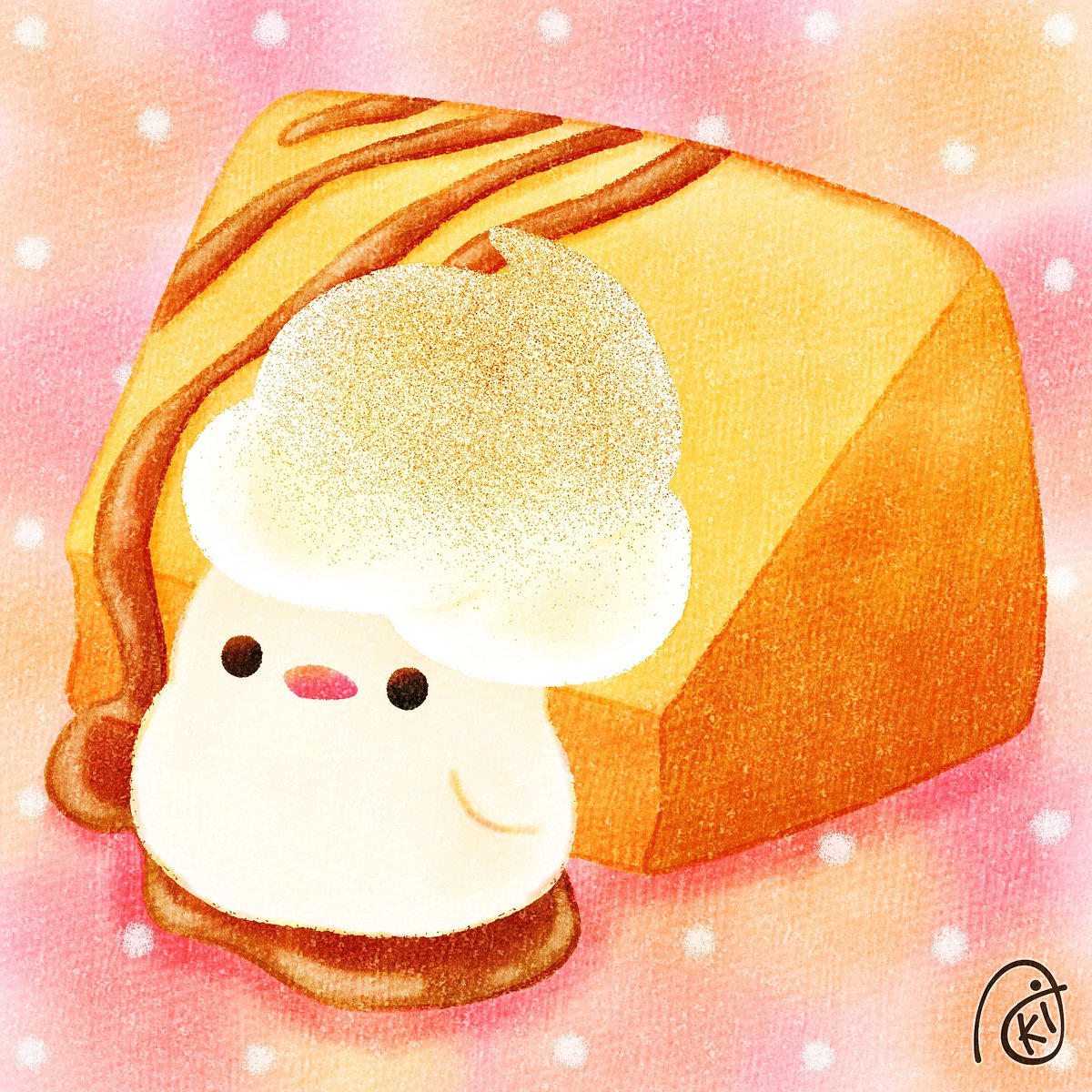 おっとろし このシフォンケーキ まるさら貰うてよかとね!?❣️ #Illustration #イラスト #ゆるいイラスト #イラスト好きな人と繋がりたい #みんなで楽しむTwitter展覧会 #シフォンケーキ #九州弁の犬 #おっとろし→びっくり!驚いた。 #まるさら→まるごと