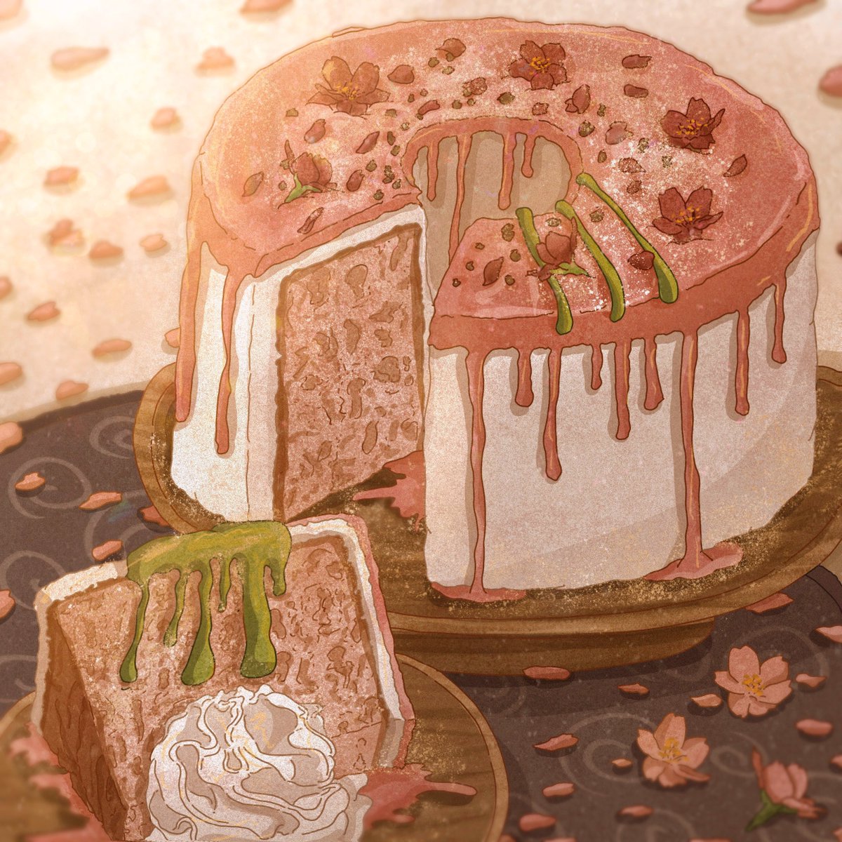 毛だま 「ね…コレよかろ?もろたとよ。 ロクちゃんも食べんね」 ロクちゃん 「ん!たぶっ!だけん はよちょーだい」 #Illustration #イラスト #ゆるいイラスト #イラスト好きな人と繋がりたい #みんなで楽しむTwitter展覧会 #シフォンケーキ #九州弁の犬 #たぶっ→たべる #はよ→はやく
