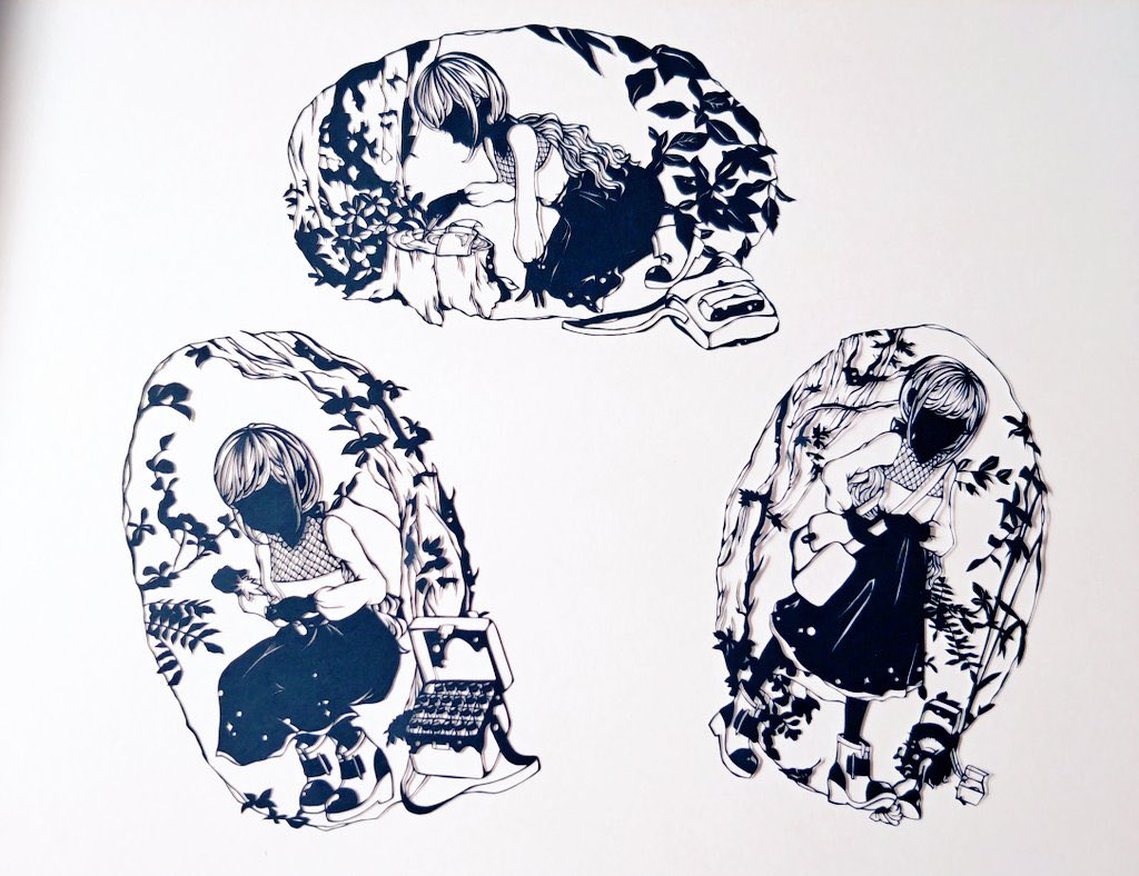 夢から飛び立つ 夢を見るほどに翼は育ち強く羽ばたけるようになる たくさんの夢を見てきた彼女はもうすぐ飛び立つ 2019年作「夢から生まれる」のリメイクです #シホ切り絵 twitter.com/shiho_9630/sta…