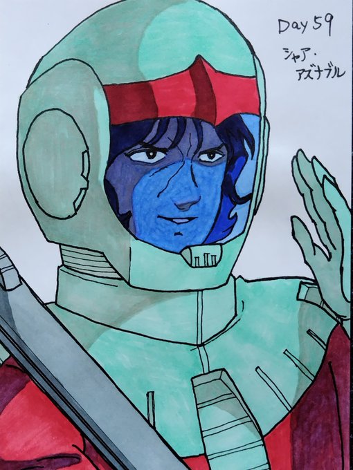 Day59 シャア・アズナブル シャアが撃たなくてもキシリアは戦死したであろうことが示唆されていますが、シャアが撃ったことに意味があるのだと思います。ガルマのことは撃ってませんしね。 #100日チャレンジ #アナログ絵 #機動戦士ガンダム #シャア・アズナブル