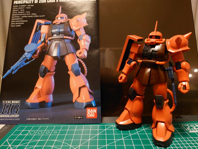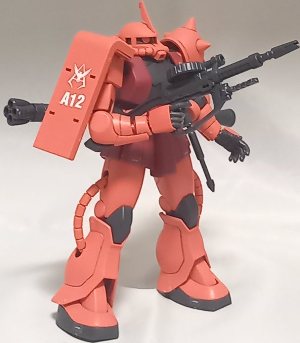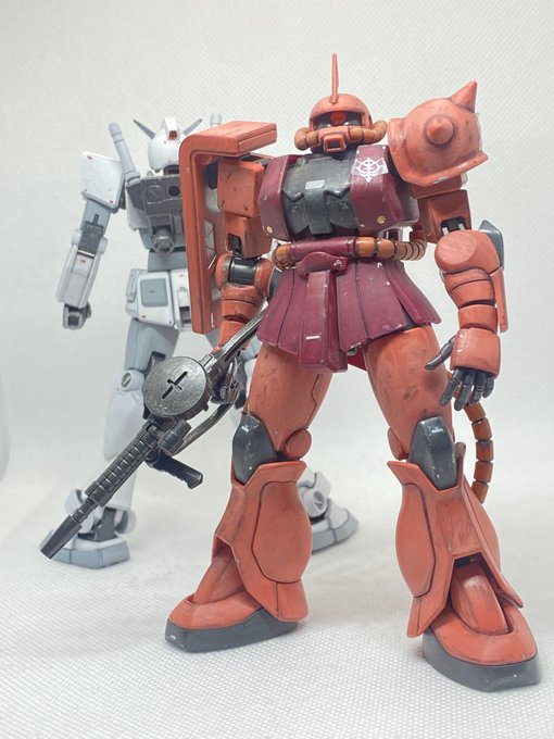 #シャア専用ザク #ガンプラの画像貼るとRTされると聞いて #ガンプラ好きと繋がりたい HGUC 234 シャア専用ザク 完成しました❗(早いかな?w) 部分塗装+つや消しに別売りのデカールやシールでリアル感アップ✨
