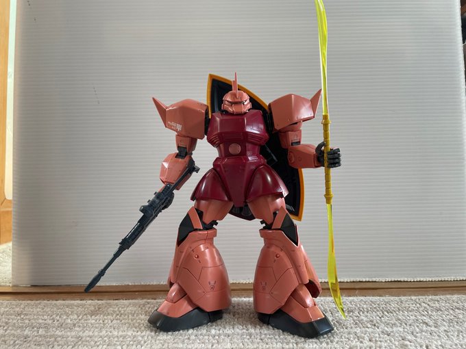 HG 1/144 シャア専用ザクを マクドナルドカラーのRED✕YELLOW で塗装した〔MS-06S(MAC)〕 シャア専用ザク(マクドナルドカラー) として作りました。 #ガンプラ #HG #シャアザク #シャア専用ザク #シャア専用マクドナルド #ガンプラの画像を貼るとRTされると聞いて