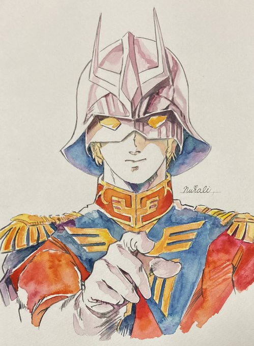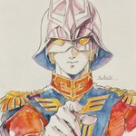 「私も 坊やだからさ」 下着から歯ブラシまで自分専用にこだわる人気悪役シャア・アズナブルの似顔絵を描いてみました。 歩行者専用横断歩道をシャア専用横断旗でご満悦に渡るのでした。 #シャア #シャアアズナブル #シャア専用 #シャア・アズナブル #シャア専用マクドナルド