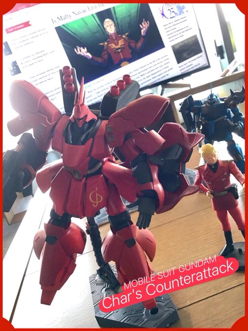 逆シャアのサザビー好きෆ( ˘͈ ᵕ ˘͈ )❥love it 後ろの青ドーガ◡̈♪ レズンのギラドーガお気に入り✨ #MobileSuitGundam #ガンダム好きと繋がりたい #ガンプラの画像を貼るとRTされると聞いて #シャア専用マクドナルド出る🍔⁉️😳