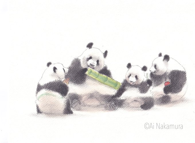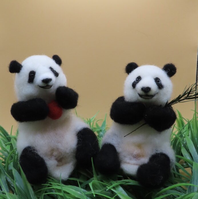 【ちーじー大熊猫繁殖センター】 シャオシャオ、レイレイと福菀ちゃん。 写真を撮り直しました。 #giantpanda #シャオシャオ #レイレイ #福菀 #羊毛フェルト #needlefelting