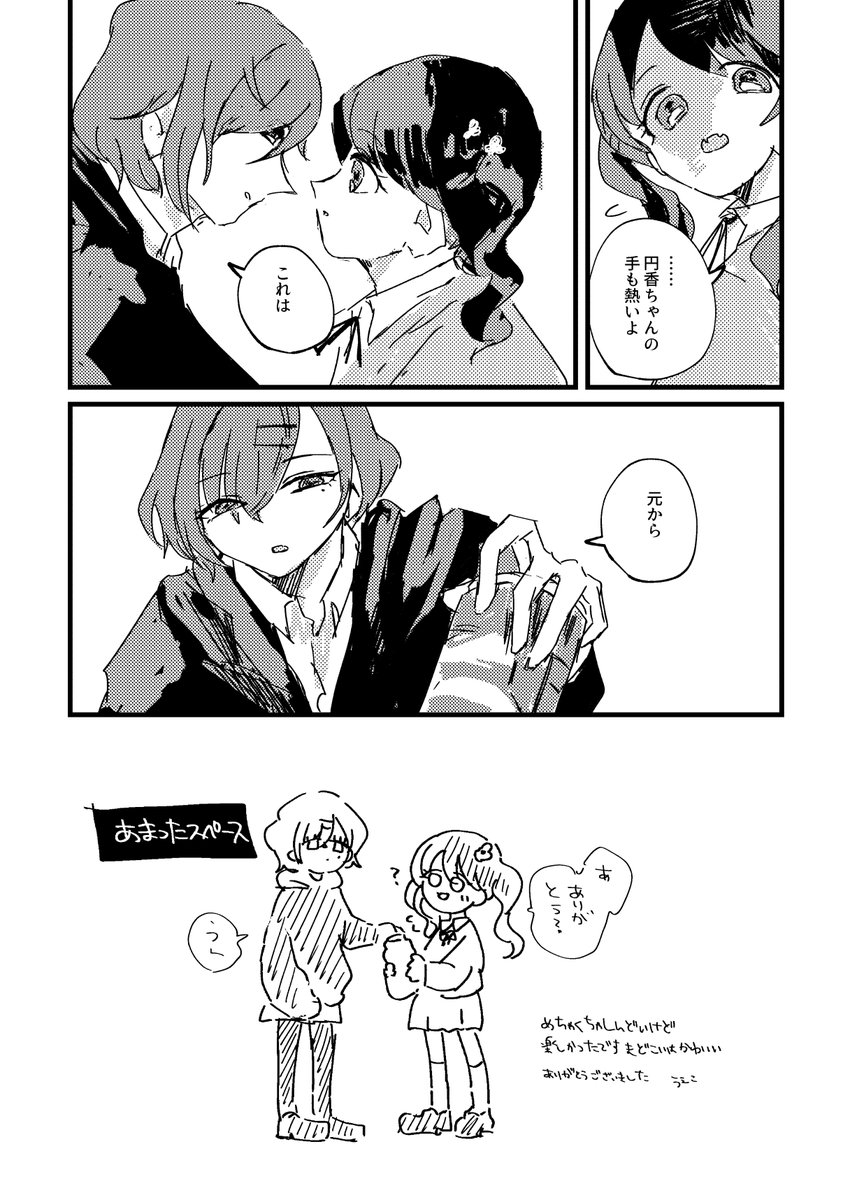 #シャニマスギリギリ合同 2p寄稿させていただきました! ネタがなかったのでただただ単純に自分の推しの真乃ちゃんと雛菜の漫画を描きました🕊🧸 テスト勉強の合間に死に物狂いで描いたキュートな一作をあなたに…